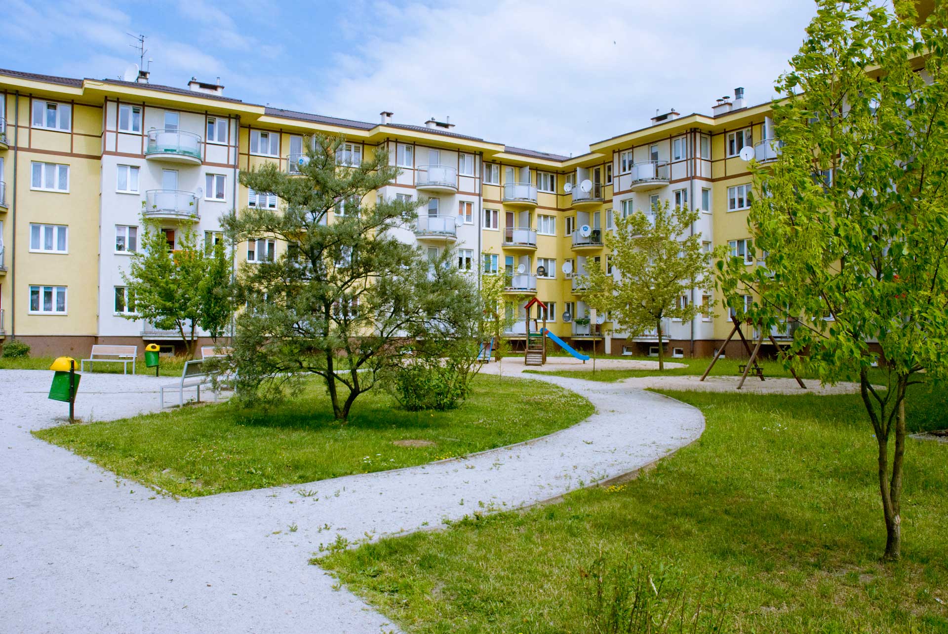 Wykończenie budowanych mieszkań: tynki gipsowe, instalacja elektryczna kompletna, łazienka wyposażona w umywalkę i wannę z bateriami oraz muszlą ustępową , instalacja centralnego ogrzewania – budynek ogrzewany poprzez kotłownię lokalną, stolarka drzwiowa typowa, stolarka okienna– okna ramowe, rozwierno – uchylne z PCV , kuchenka elektryczna, zlewozmywak na szafce z baterią, lokale indywidualnie opomiarowane, zastosowano materiały i technologie gwarantujące.
