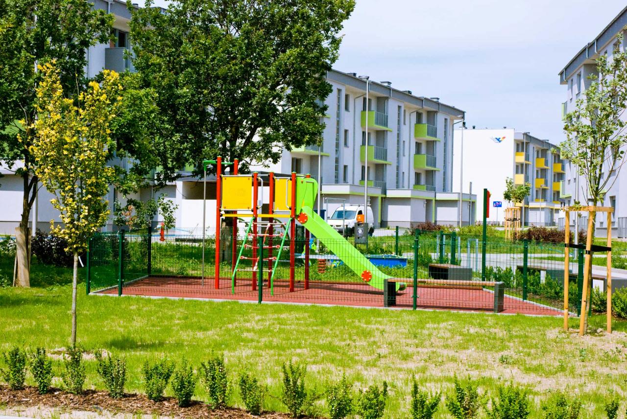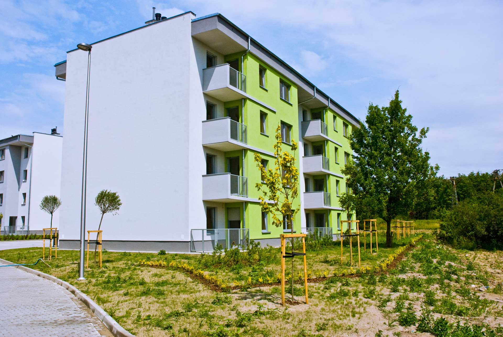 Wykończenie budowanych mieszkań: tynki gipsowe, instalacja elektryczna kompletna, łazienka wyposażona w umywalkę i wannę z bateriami oraz muszlą ustępową , instalacja centralnego ogrzewania - budynki ogrzewane poprzez kotłownie lokalną, stolarka drzwiowa typowa, stolarka okienna– okna ramowe, rozwierno – uchylne z PCV , wykładziny PCV, panele podłogowe, kuchenka elektryczna, zlewozmywak na szafce z baterią, lokale indywidualnie opomiarowane, zastosowano materiały i technologie gwarantujące oszczędne zużycie energii cieplnej.