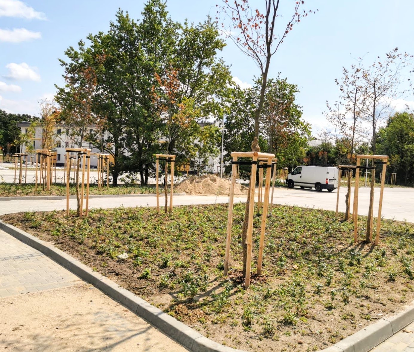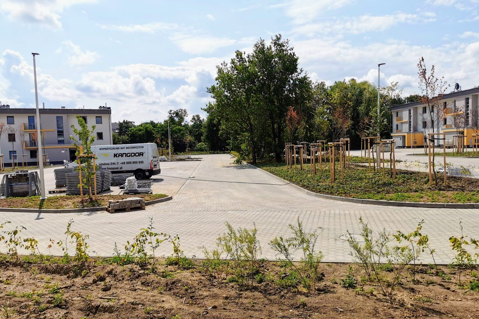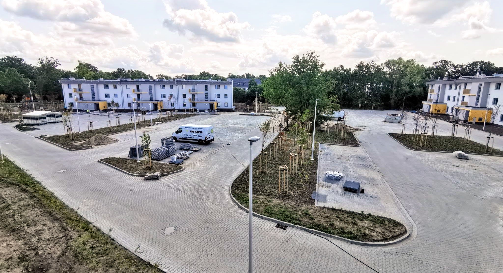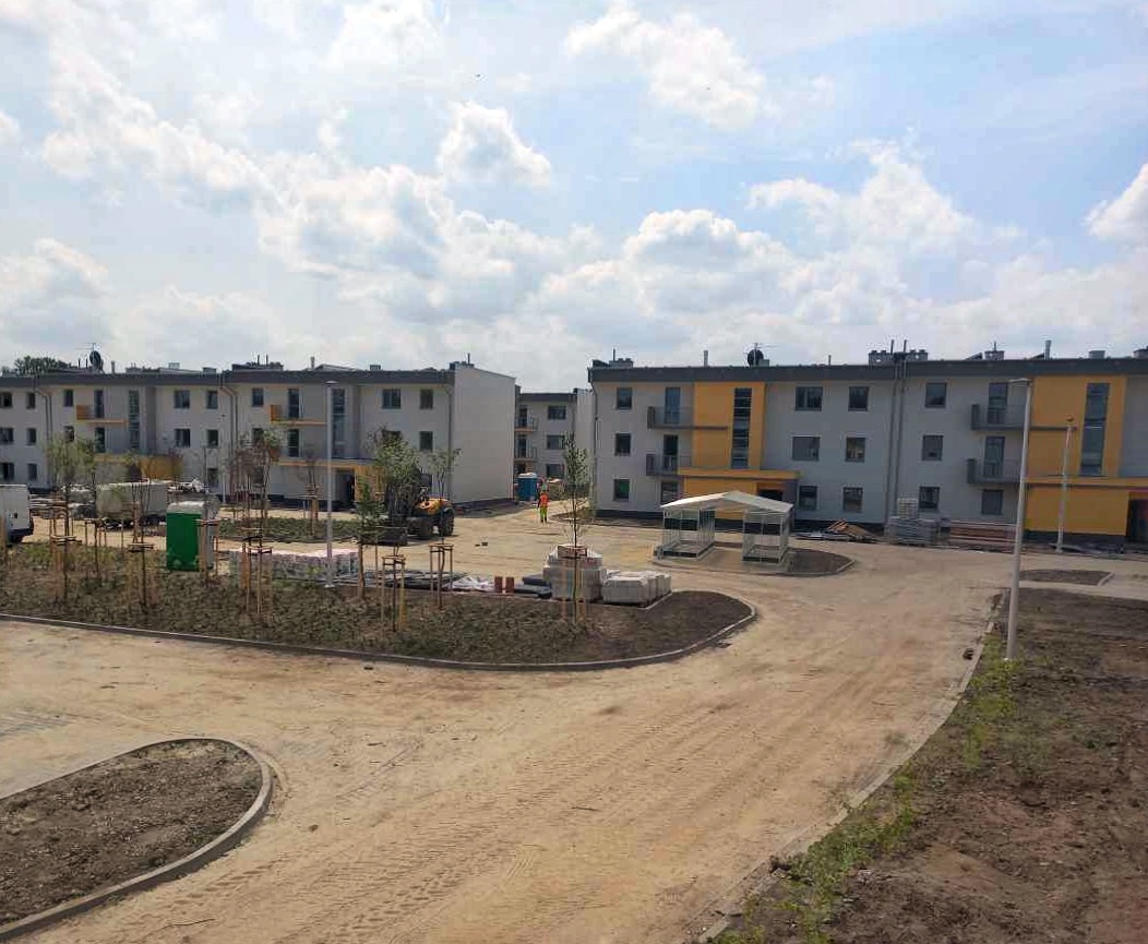 - na terenie osiedla trwają prace na terenach zewnętrznych: budowane są drogi wewnętrzne oraz place,