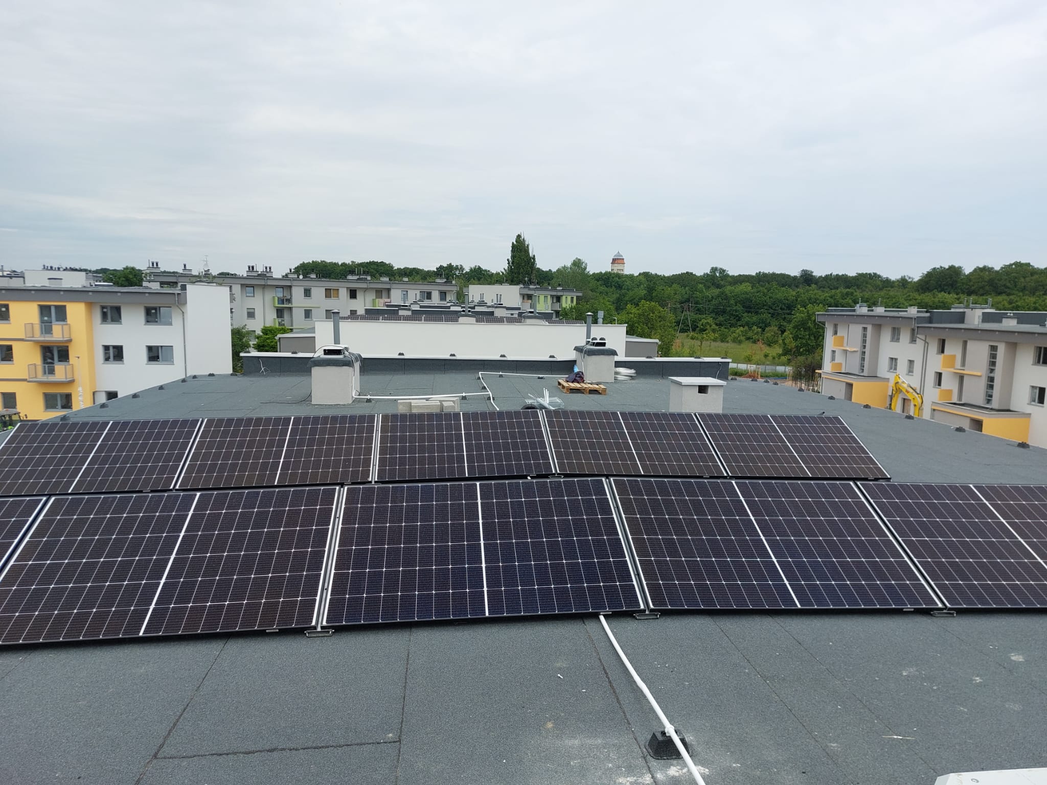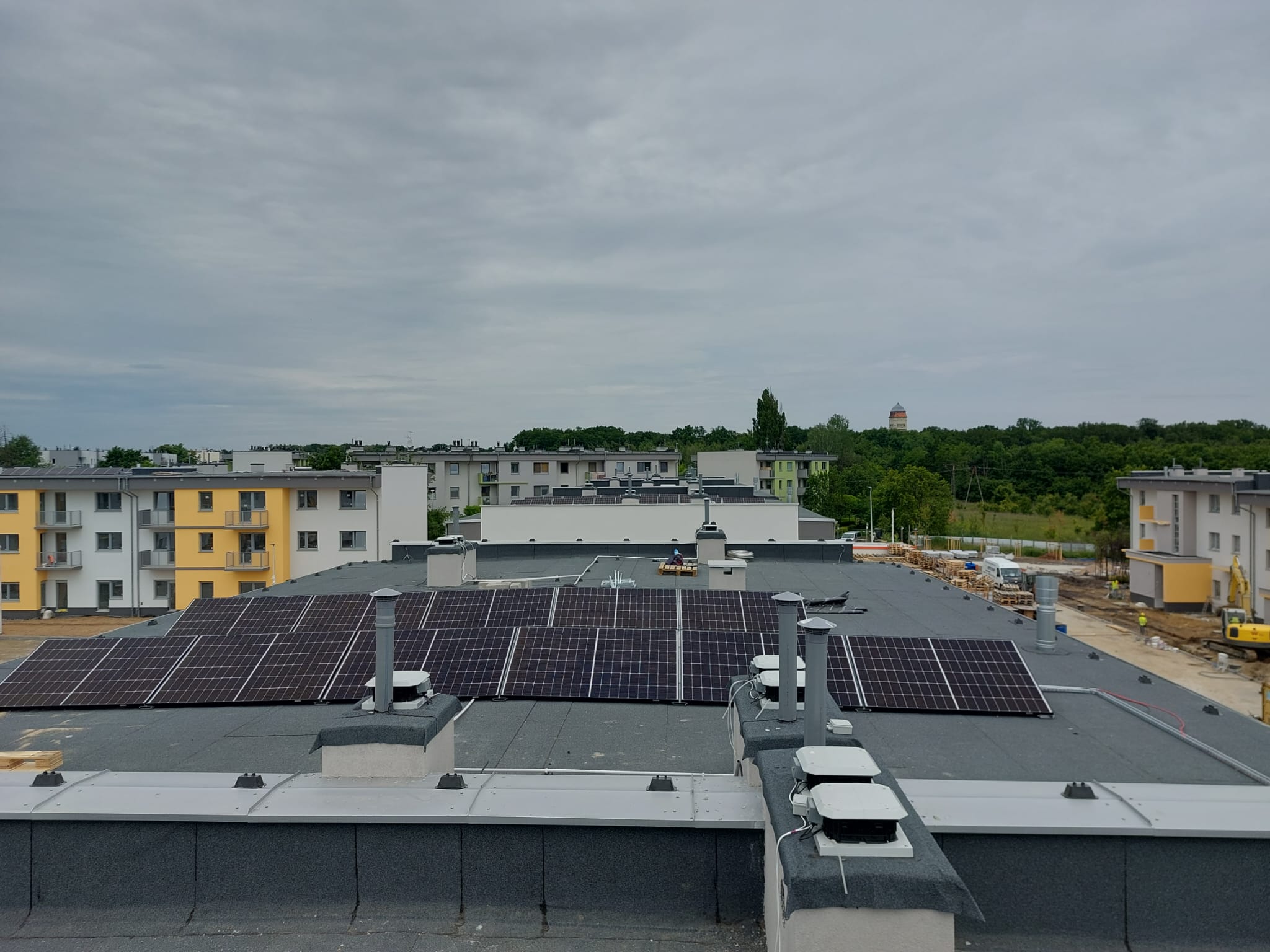 Ważny moment na budowie osiedla Leśnica IX. Na każdym z 12 budynków powstającego osiedla właśnie pojawiła się instalacja fotowoltaiczna.