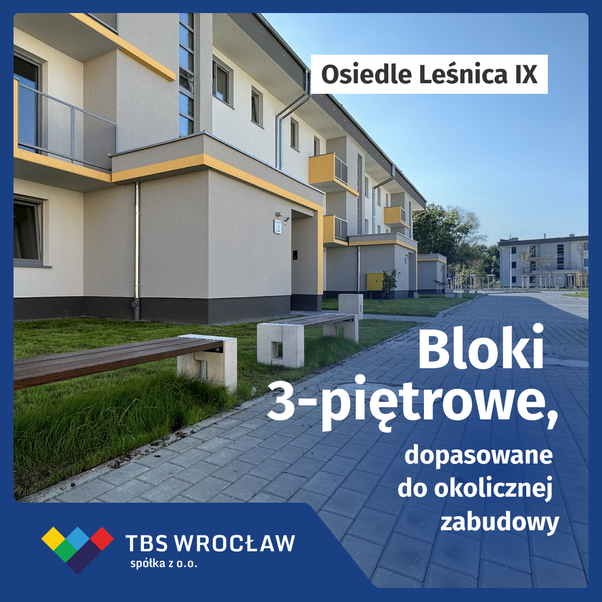 W październiku 2023 r. zakończyła się budowa osiedla Leśnica IX TBS Wrocław. Nasze najnowsze osiedle powstało na działce położonej między ulicami: Błońską, Dolnobrzeską, Marszowicką i Uraską w Leśnicy, uzupełniając lukę w zabudowie urbanistycznej w tej części Wrocławia.
