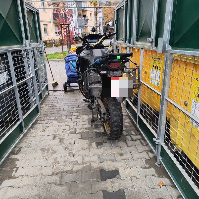 Jeśli znają Państwo właściciela zaparkowanego motocykla — prosimy o przekazanie informacji, aby pojazd parkował na jednym z wielu miejsc parkingowych dostępnych na osiedlu.
